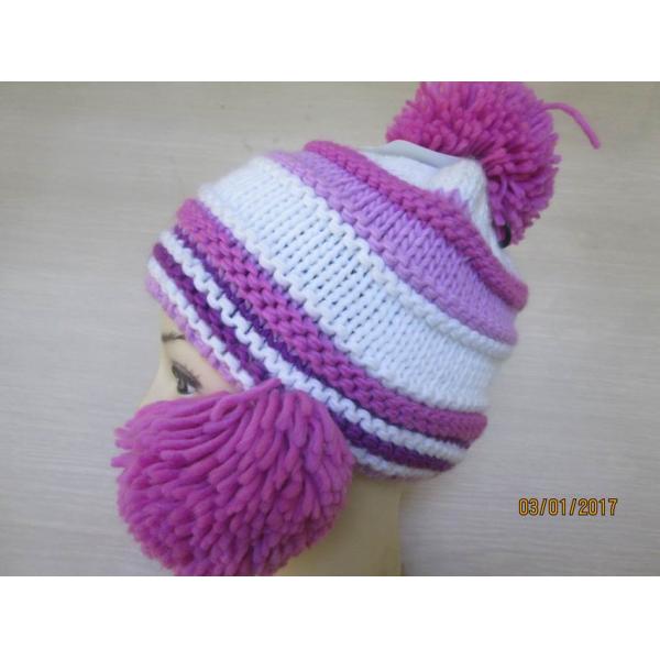 Super cute/lovely girls hat--100% acrylic yarn--pompom hat with fleece lining Images |